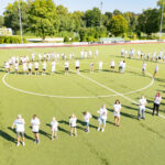 Unterstützt von einer perfekten Organisation und sehr disziplinierten Sportlerinnen und Sportlern startete das Event pünktlich um 17:00 Uhr. Auch die Drohne selber half dabei, das Logo möglichst originalgetreu abzubilden, da vor den entscheidenden Aufnahmen über ein Mikrofon Feinabstimmungen mit der Gruppenformation vorgenommen werden konnten. Insbesondere die kleinen Sportlerinnen und Sportler zeigten sich von der Technik begeistert und wollten die Drohne anschließend vom Fotografen Dirk Frerichmann genauestens erklärt bekommen.