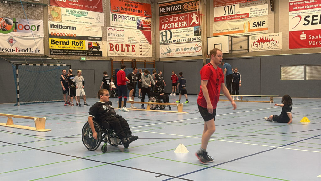In der darauffolgenden Woche ging es dann „auswärts“ zu einem besonderen Trainingsbesuch nach Ahlen zu den Ahlener Mammuts. Gemeinsam absolvierten beide Teams eine intensive Trainingseinheit. Nach einem ausführlichen und ungewohnt langen Aufwärmprogramm wurden die Mannschaften bewusst durchmischt, sodass neue Spielkonstellationen entstanden.